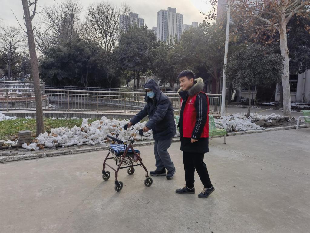(志愿者和老人交流)
