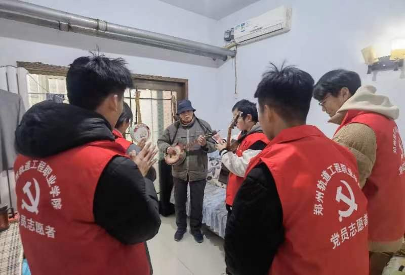 除了生活上的关怀,支部还特别准备了丰富的互动环节。学生们为老人们表演了精心编排的文艺节目,包括红色歌曲合唱、乐器演奏、诗朗诵等,精彩的演出赢得了老人们的阵阵掌声。此外,结合学院专业特色,志愿者们还利用浅显易懂的语言,向老人们简单介绍了轨道交通的发展与安全出行小知识,展现了学院学子的专业素养与社会担当。活动现场气氛温馨而热烈,老人们的脸上洋溢着幸福的笑容。