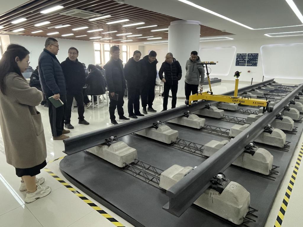 座谈交流结束后,在郑州铁路职业技术学院铁道工程学院相关负责人陪同下,轨道工程学院先后参观了高速铁路轨道检测与精调训练基地、铁道工程演练场、线桥隧虚实仿真实训基地、铁道文化博物馆等核心实训场所。