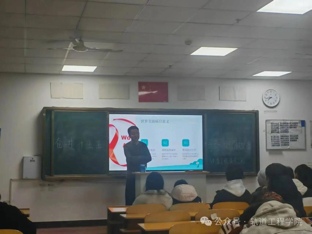 2025年12月1日是第38个“世界艾滋病日”,为深入贯彻落实《“十五五”国民健康计划》精神,进一步增强大学生对艾滋病防治知识的了解,树立科学防艾理念,消除对艾滋病感染者的歧视,营造健康、平等、和谐的校园环境,轨道工程学院于2025年11月27日,组织全院各班级开展了以“科学防艾,青春无‘碍’”为主题的班会活动。
