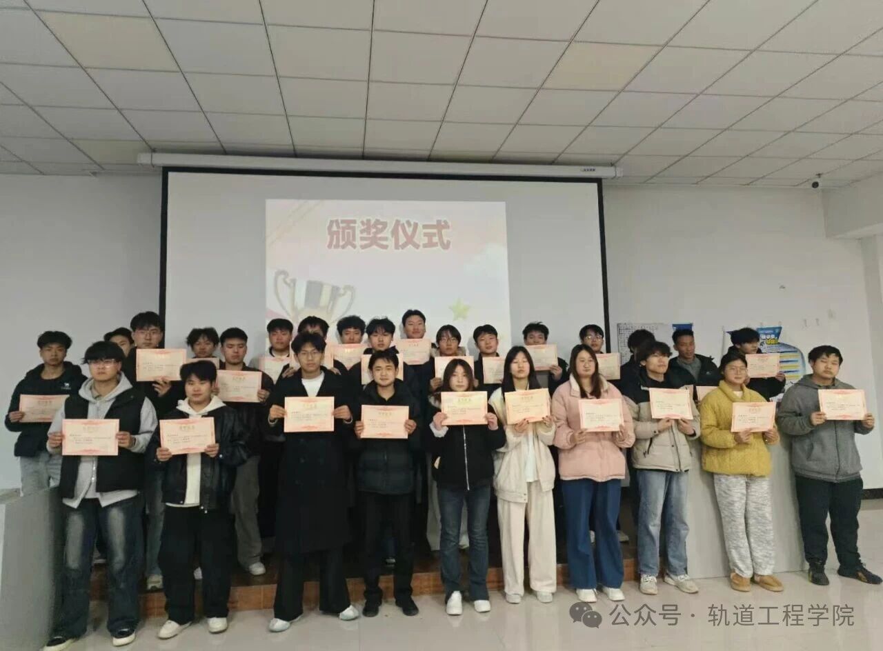 为贯彻落实学校立德树人根本任务,强化班级学风建设与榜样引领作用,充分调动同学们的学习积极性和集体荣誉感,轨道工程学院于2025年12月3日进行了2024-2025学年第二学期评奖评优的颁奖。我院本次校级评奖评优中,80名同学荣获校级“三好学生”称号,30名同学荣获获校级“优秀学生干部”,2个班级荣获校级“先进班集体”,充分展现了轨道工程学院学子的优良风貌与班级建设的丰硕成果。