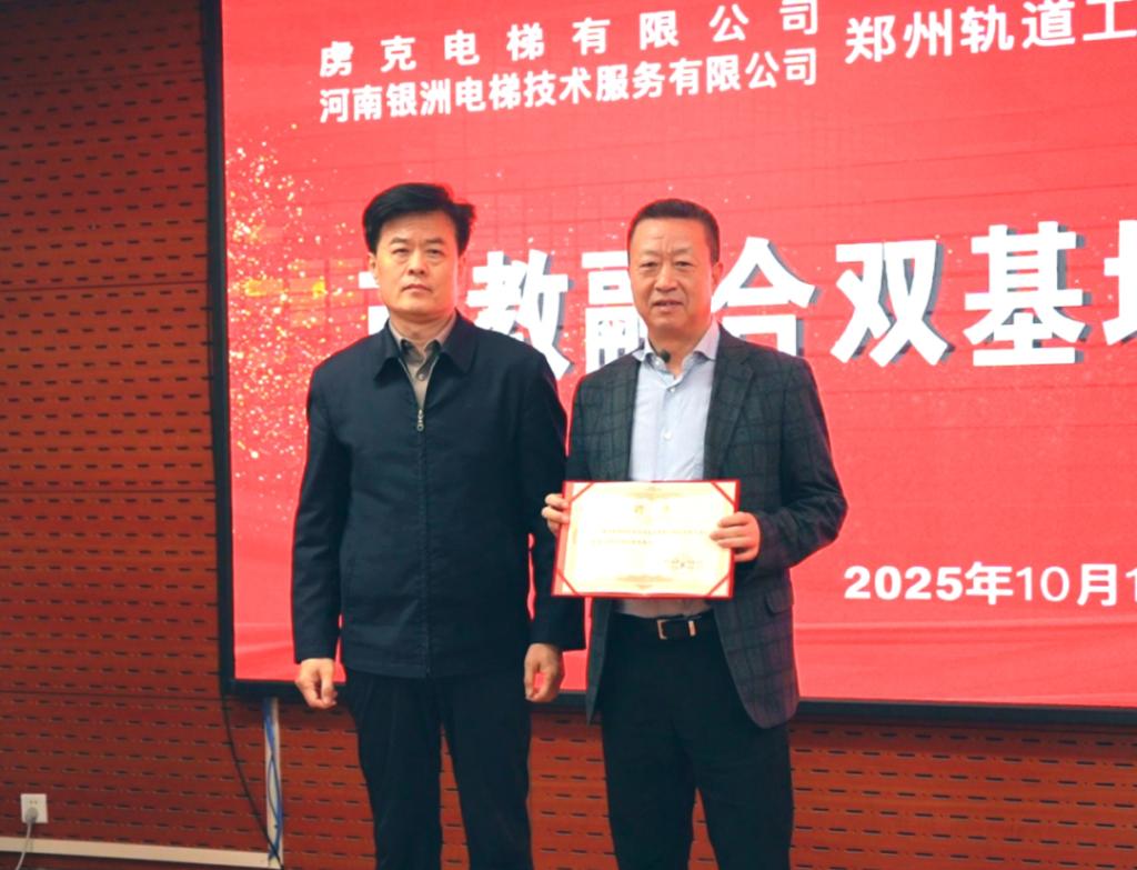 10月17日上午10时,我校与河南银洲电梯技术服务有限公司、虏克电梯有限公司“产教融合双基地”揭牌仪式在虏克电梯有限公司2号楼2楼报告厅成功举行。此次合作标志着三方在深化职业教育改革、推动校企协同育人上达成深度共识,为培养电梯行业高素质技术技能人才按下“加速键”。