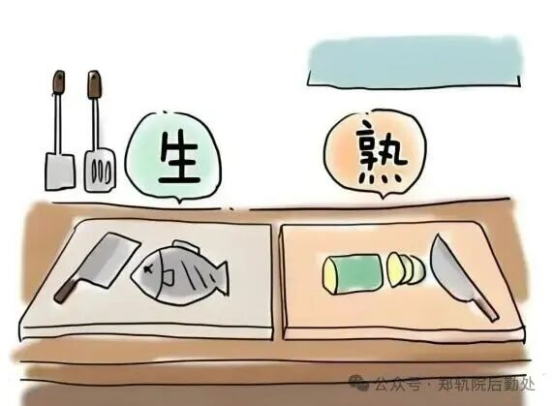 加工食物的厨具、容器要生熟分开:处理食物的案板、刀具要分开使用,用后要分别清洗干净。