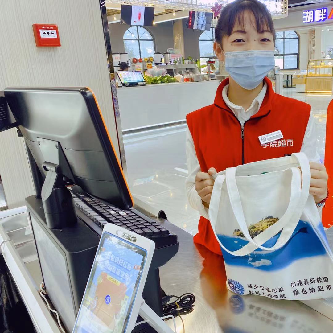 为响应国家“低碳环保,节能排放”的号召,提高我校师生对“白色垃圾”危害的认识,建设资源节约型和环境友好型校园,郑州轨道工程职业学院后勤处超市特推出环保帆布购物袋。希望大家积极行动起来,养成环保习惯,加强垃圾分类,减少一次性塑料袋的使用,减少废旧塑料包装物的产生量。