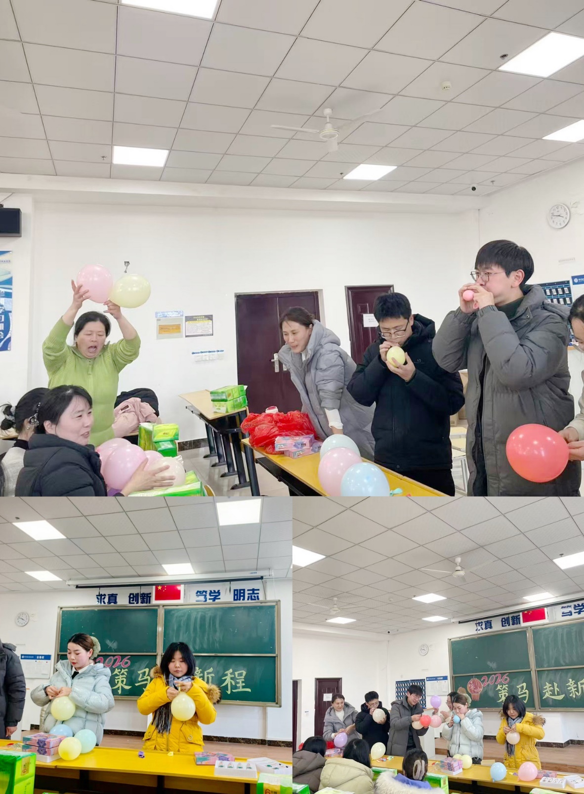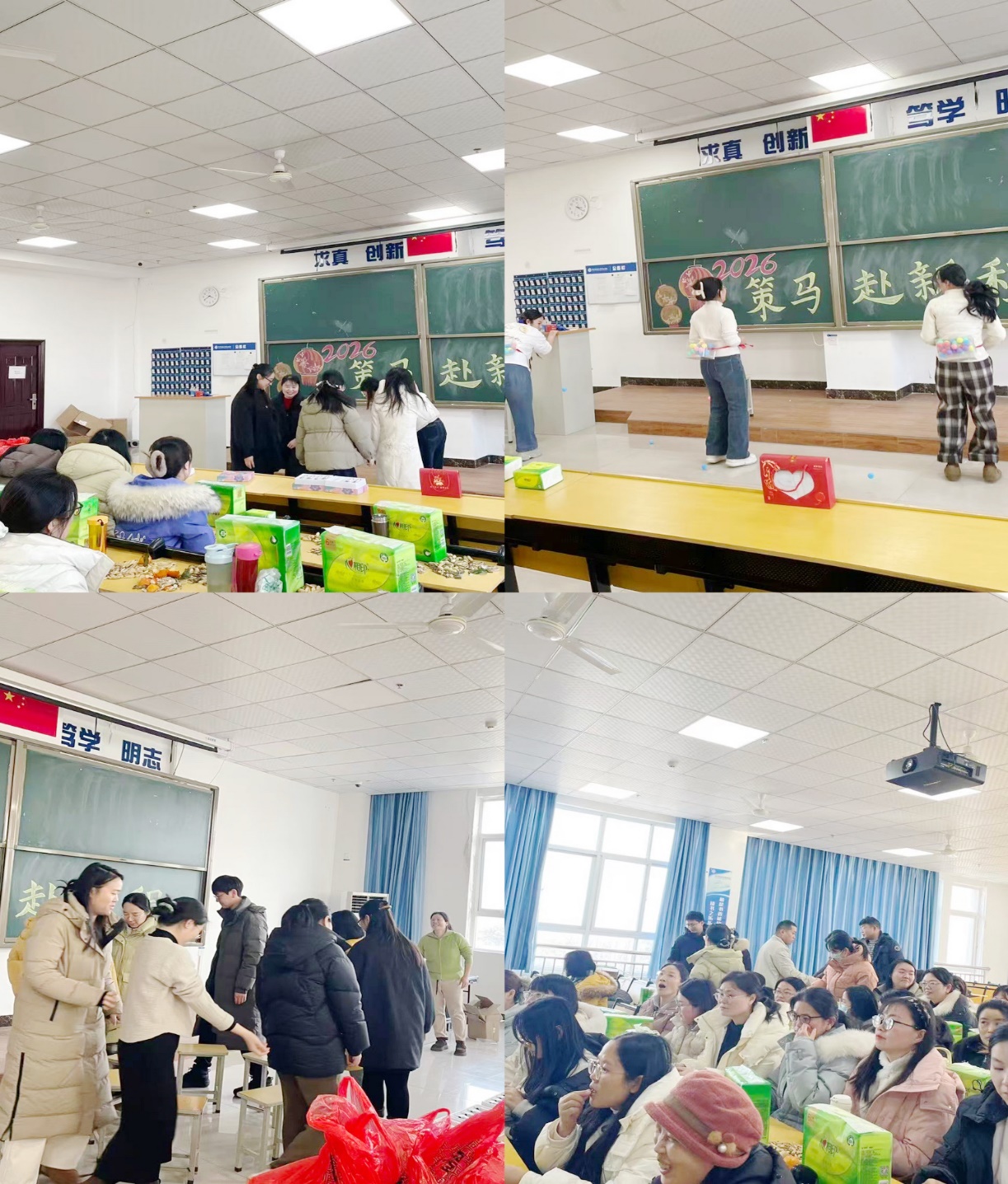 岁末寒冬,暖意融融。为喜迎2026新年到来,丰富教职工精神文化生活,增强部门向心力与团队协作力,近日,基础教学部分工会以“青春筑梦 喜迎新年”为主题,精心筹备的新年联欢会在201教室圆满举办,全体教职工齐聚一堂,载歌载舞共庆佳节,在欢声笑语中开启新岁篇章。