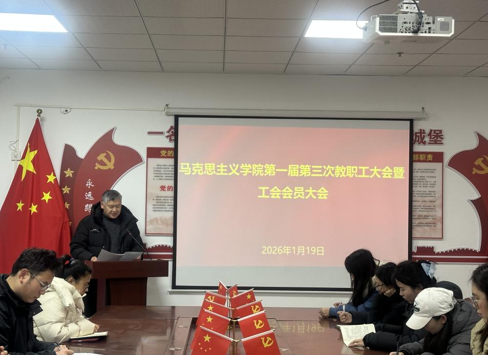 为充分激发教职工民主管理活力,扎实推进学院高质量内涵式发展,2026年1月19日上午,马克思主义学院第一届第三次教职工大会暨工会会员大会于综合教学楼215会议室隆重召开。马克思主义学院全体教师参加,共谋发展,共绘蓝图。