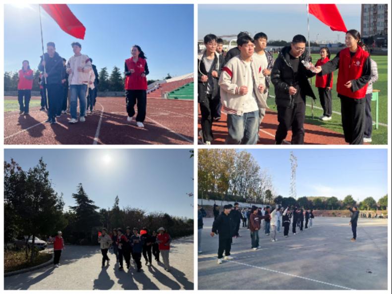 科学讲解示范:党员教师们向参与活动的学生详细讲解校园跑的科学方法,包括跑前热身、跑姿纠正、呼吸调整、合理配速以及跑后拉伸等关键环节,帮助学生掌握正确的跑步技巧,避免运动损伤。