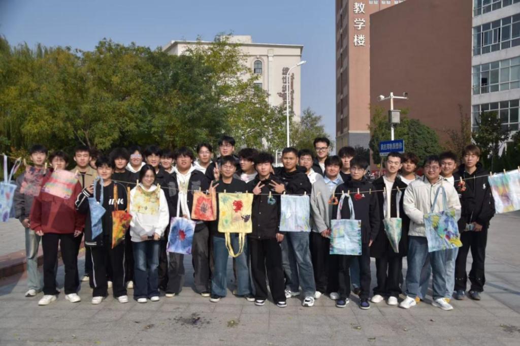 经浸染、漂洗、晾晒后,素白布料蜕变为色彩斑斓的艺术品。师生们将成品挂在绳线上,微风拂过,布料轻摇,与教学楼、绿树相映成趣,成为校园里一道兼具文化味与青春感的风景线。“每一块染布都是独一无二的,就像我们每个人都是中华民族不可或缺的一部分。”装备制造工程学院院长许培援说。