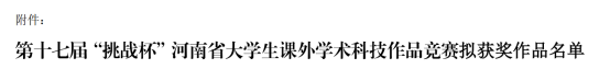 “挑战杯”大学生课外学术科技作品竞赛被誉为当代大学生科技创新的“奥林匹克”盛会,备受广大青年学生推崇,是高校参赛面最广、参赛水平最高、影响最广泛的大学生学术科技竞赛活动。该赛事突出以赛促学、以赛育人的办赛理念,为全省大学生搭建了展示创新成果的重要平台。通过竞赛,有效激发了青年学子的创新热情,培养了科学精神,为加快河南国家创新高地建设、推进现代化新征程注入了蓬勃的青春力量。