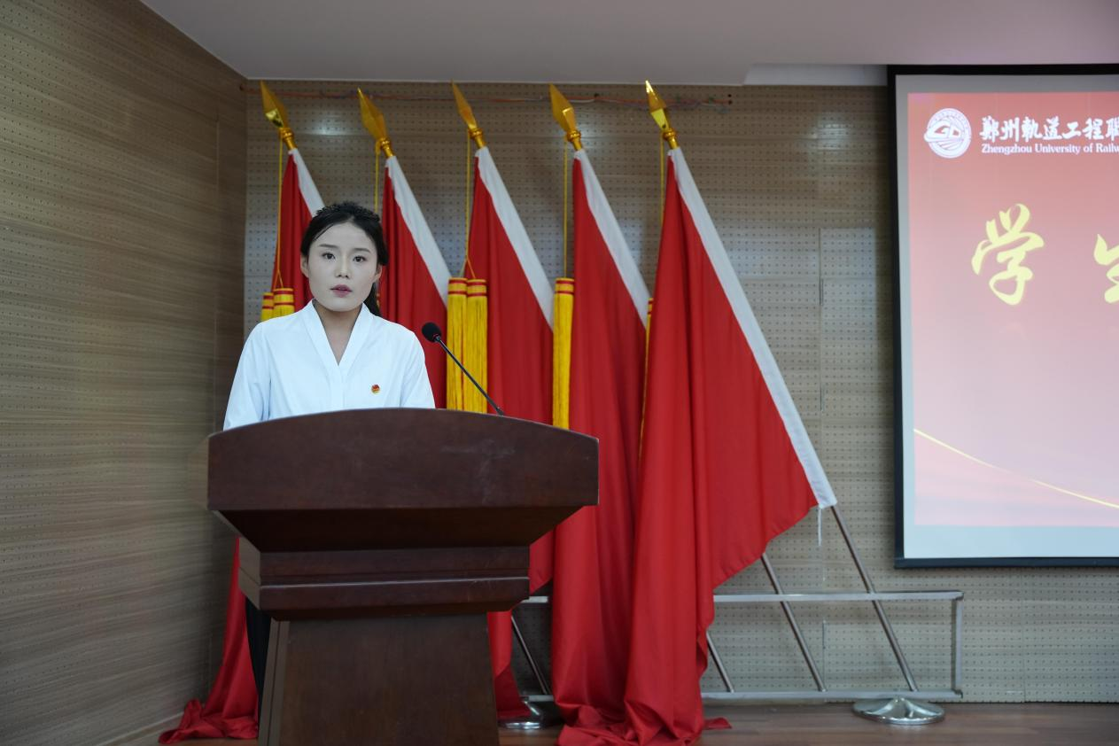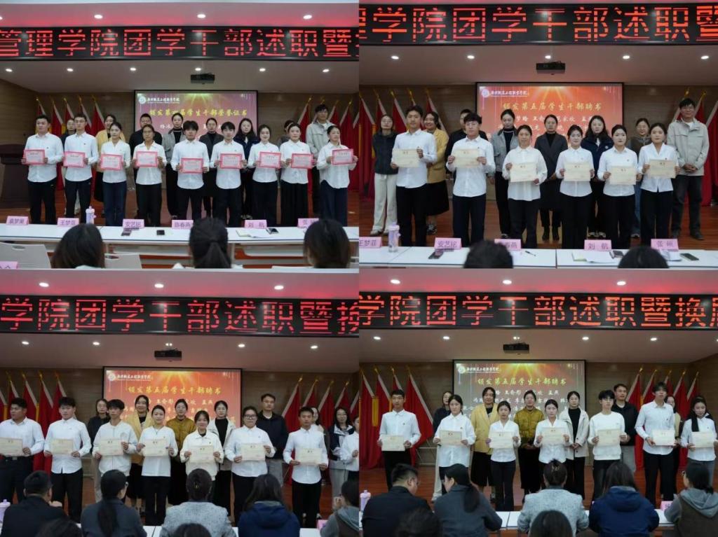 在隆重的仪式环节,与会领导依次为第四届团学干部颁发荣誉证书,以表彰其过往贡献;同时为第五届团学干部颁发聘书,正式交付未来担当。随后,在学生会主席团成员谢成龙的带领下,全体新任干部庄严宣誓,铿锵誓言彰显了履职尽责的坚定决心。