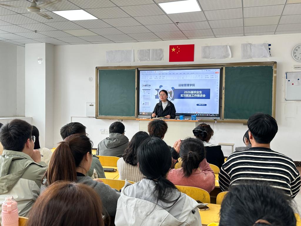 为深入贯彻落实立德树人核心使命,扎实推进2026届毕业生实习与就业工作,运输管理学院于10月15日召开2026届毕业生实习就业工作推进会。学院党总支书记陈春燕主持会议并作指导讲话,旨在通过强化实习环节,有效打通从校园到职场的“最后一公里”,为毕业生高质量就业奠定坚实基础。