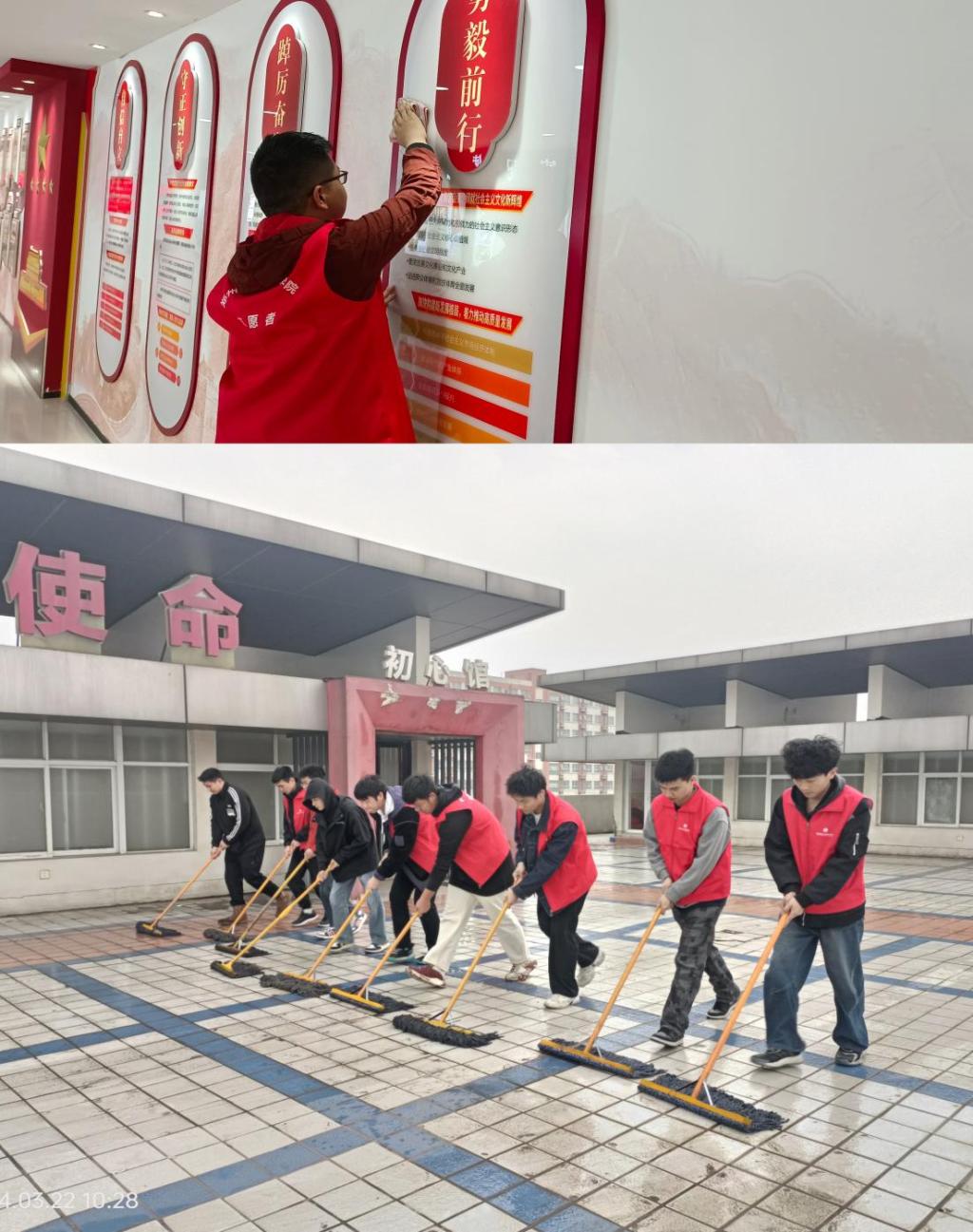 活动当天,学生党支部成员早早地来到党建馆,他们身着统一的志愿者服装,手持清洁工具,满怀热情地投入到卫生打扫工作中。大家分工合作,有的负责扫地、拖地,有的负责擦拭展板,还有的负责整理书架、清理杂物。在大家的共同努力下,党建馆焕发出新的光彩,显得整洁而有序。