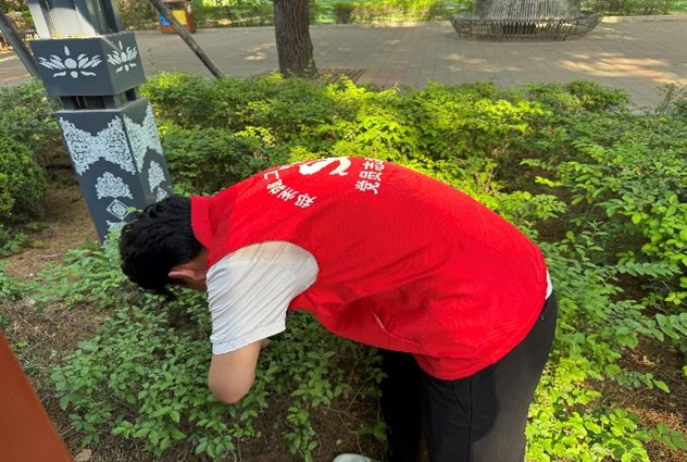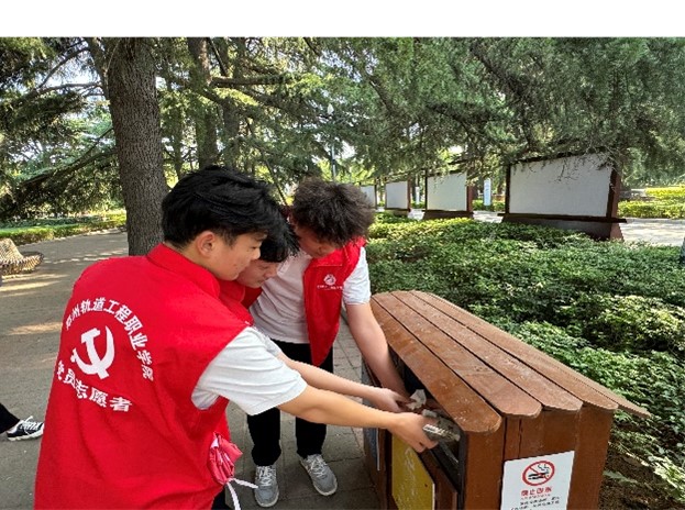与此同时,学生党支部成员在公园内开展了一场拾捡垃圾的志愿活动。他们手持垃圾袋,仔细捡拾地上的废弃物,以实际行动践行环保理念。在大家的共同努力下,公园的环境变得更为整洁美观,也获得了游客们的一致称赞。