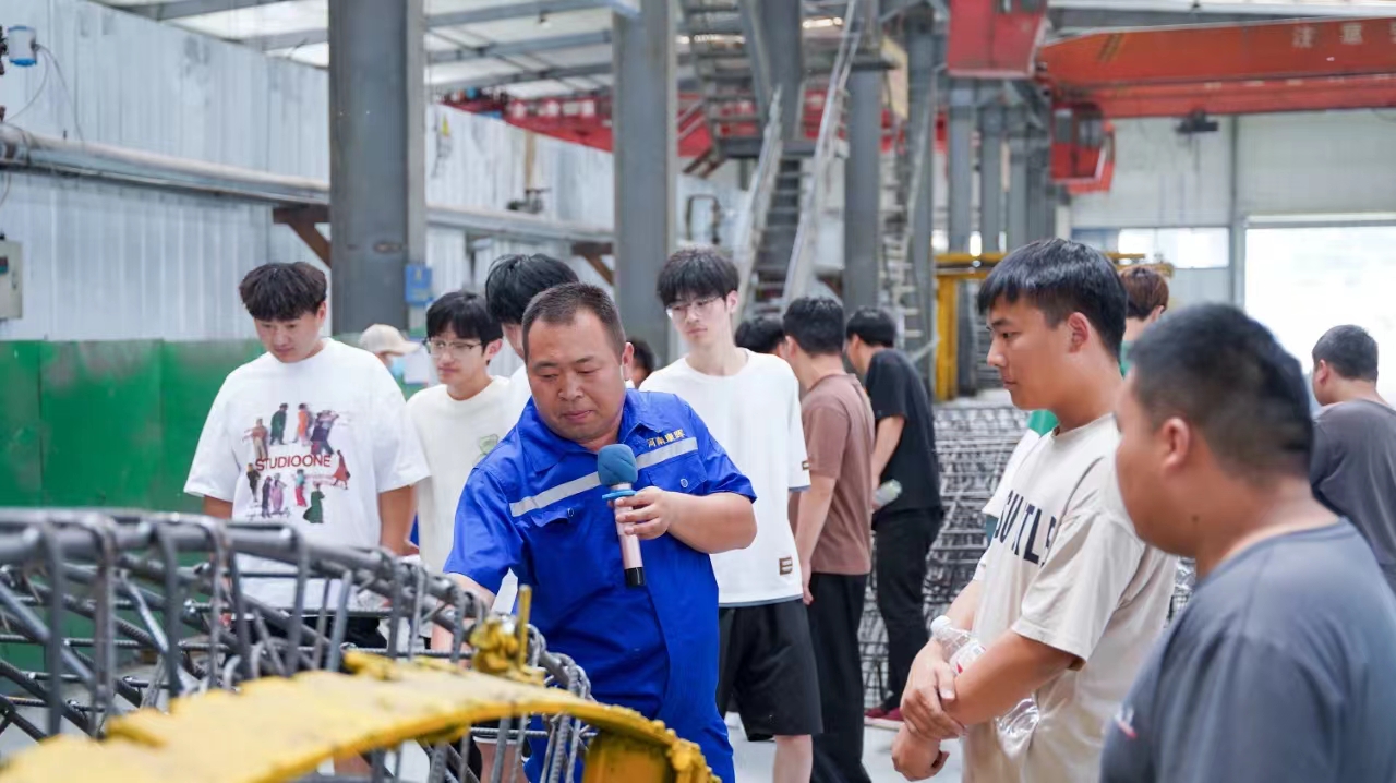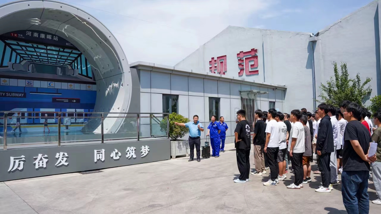 河南康晖水泥制品有限公司负责人对该学院师生的到来表示热烈欢迎,闫富有对河南康晖水泥制品有限公司提供的宝贵参观实训机会表示由衷感谢。公司负责人带领师生参观了盾构管片生产线、管片水养池、水泥振动房等关键生产场地,并详细介绍了各个环节的生产工艺、质量控制体系以及产品应用领域。刘开洋对公司先进的生产设备、严格的管理制度和高效的生产流程表示高度赞赏。