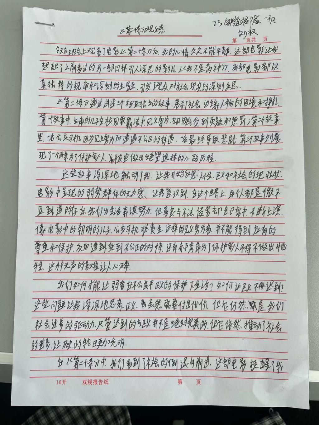随后,学生们纷纷展开了热烈的讨论。他们围绕电影的主题、情节、人物等方面进行了深入的探讨和交流并提交了观后感。