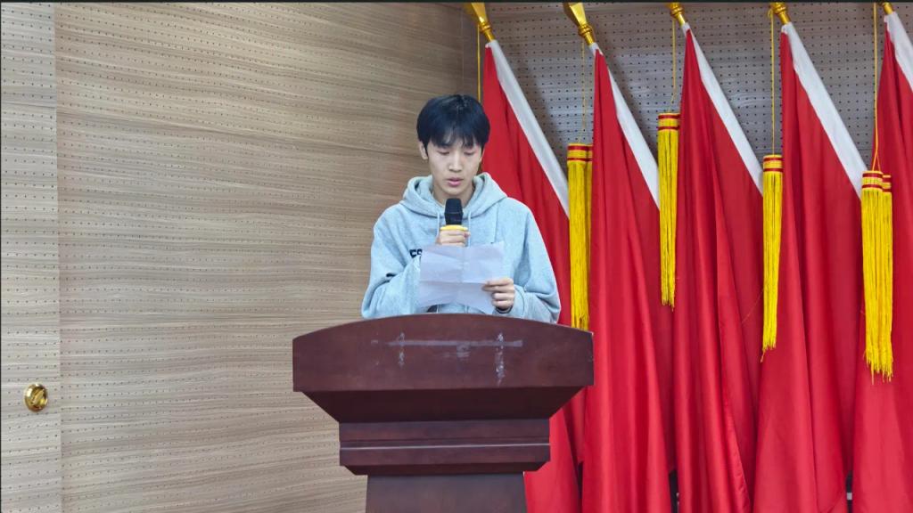 获奖学生代表23级城市轨道交通工程技术一班李东阳发表获奖感言。他认为比赛收获良多,要以之为动力,持续努力,还号召同学惜学参践,为城轨事业献力。