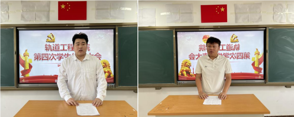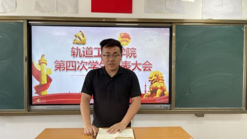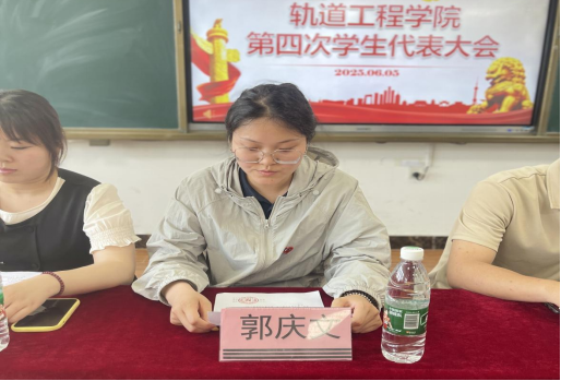 2025年6月5日,轨道工程学院第四次学生代表大会在庄重而热烈的氛围中隆重举行。学院党总支书记刘开洋、党总支副书记陈庚、学生党支部书记郭庆文、学生会指导老师董玉倩、辅导员吕文超等领导老师出席,学生代表齐聚一堂,共商学院学生工作发展大计。