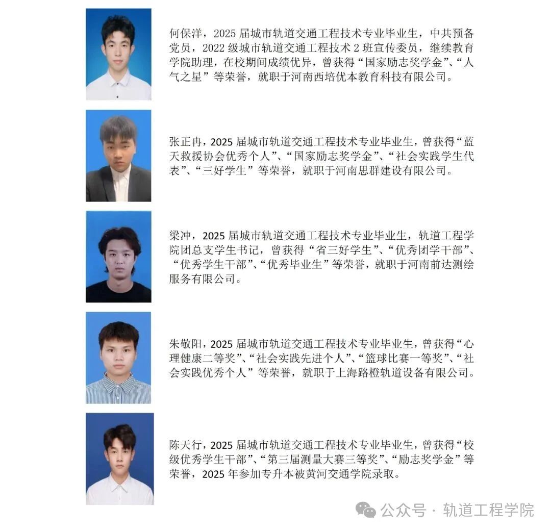 亲爱的2025级学子,十余载寒窗沉淀,此刻的你已站在人生新的起跑线,即将开启充满无限可能的求知之旅!我热忱地欢迎你加入郑州轨道工程职业学院轨道工程学院!愿你在这里以匠心铸魂、以技能立身,为轨道事业创新突破,为交通强国建设贡献青春力量!郑州轨道工程职业学院轨道工程学院,期待与你共绘中国轨道未来蓝图!