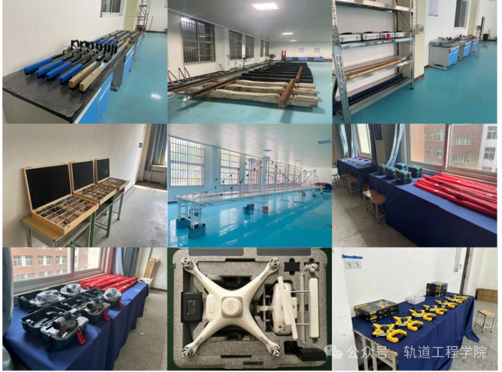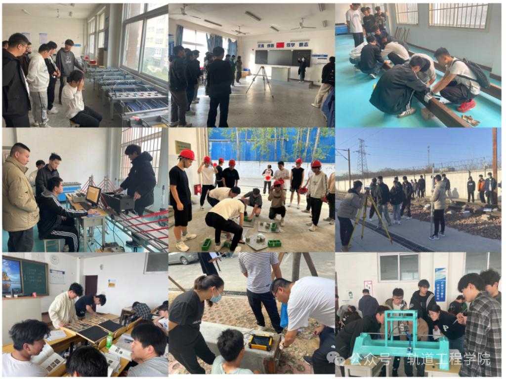 学院建有“隧道与轨道工程测试实验中心”,室外设钢筋混凝土无损检测、桩基测试实训基地,室内含土木工程材料、轨道检测等10余个实训室及钢筋加工场。实训平台覆盖水泥检测、轨道精调、桥隧养护等领域,面向师生开放综合性实验及科创活动,支持自拟实验与实际问题解决。中心结合实训项目开展铁道工程、电工等职业技能认证培训,通过“实验教学+考证实训”模式,重点培养学生实践能力与创新创业意识,助力学生轨道工程类职业资格证书考取。