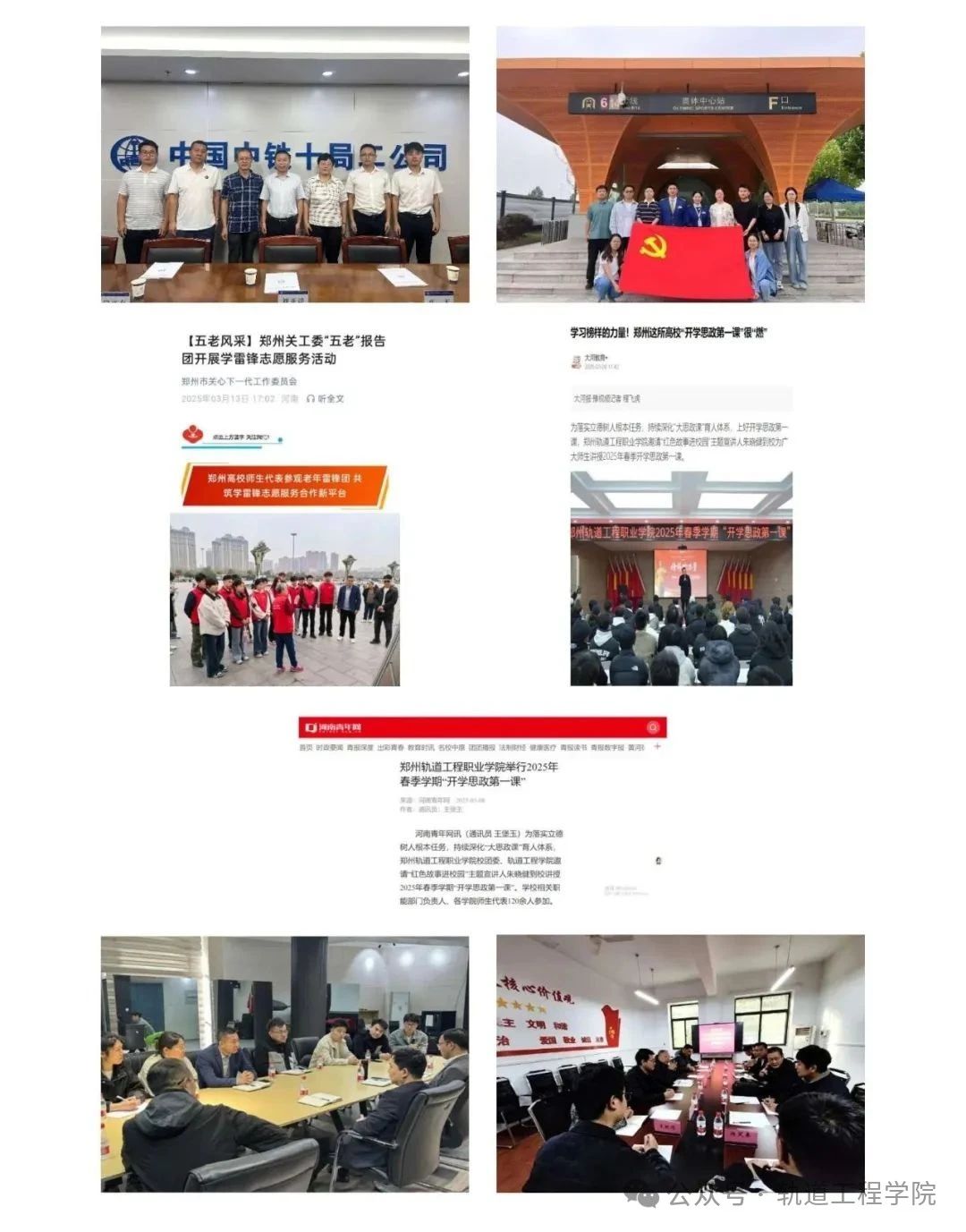 轨道工程学院注重产教融合,与中铁十局、郑州地铁集团、中建七局等大型国企建立深度合作,通过提供实习岗位、参与项目实践等方式,助力学生将理论与实践结合,提升专业素养,为就业奠定基础。学院组织学生在郑州站开展志愿服务,展现了学子良好风貌,该活动被郑州市关工委报道,同时学院邀请中国雷锋报讲师团团长朱晓健来我校讲授开学第一课,被大河网、河南青年网等媒体报道,提升了学院社会形象,培养了学生责任感。此外,学院与郑州大学、郑州科技学院等兄弟院校在学术研究、学科建设、专业发展等方面保持密切交流,借鉴各方经验,推动教育教学改革,培养高素质轨道交通人才。