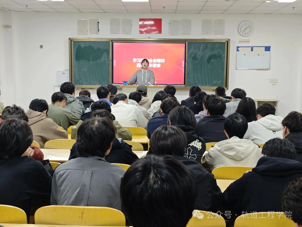 为深入学习贯彻党的二十届四中全会精神,引导全院同学深刻领会国家发展大政方针,特别是准确把握“十五五”时期发展规划的核心要义与战略导向,明确青年一代在推动中国式现代化宏伟事业中的历史责任与时代使命,轨道工程学院于2025年11月5日组织全体班级召开了“学习四中全会精神・践行青年使命”主题班会。