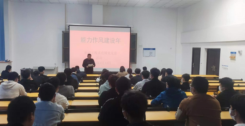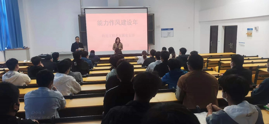 为贯彻落实省委高校工委关于在河南省高校开展“能力作风建设年”活动的决策部署,4月14日13:00,轨道工程系直属党支部开展“能力作风建设年”系列活动之学习中国共产党河南省第十一次代表大会精神,全体教职工、学生预备党员及积极分子共同参与学习,会议由李金威老师主持。