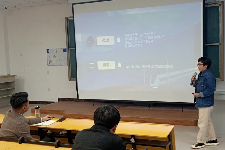 在活动中,轨道交通专业基础课教研室主任周会丽,作为前5次“磨说系列教研活动”代表,以《铁道概论》课程为例,以自信的姿态展示了系前期集体“磨说课”凝炼出的说课方面的教研成果;城轨交通工程教研室主任晋学超、铁路施工与维护教研室主任邸小龙,代表系专业教育建设工作小组,分别以《城市轨道交通工程技术》、《高速铁路施工与维护》大专专业为例,从专业角度详尽展示和汇报了系前期专业教育建设所取得的成果;上学期新入职的6名教师,就自己承担的课程,以饱满的激情,进行了说课汇报和展示。整个活动,准备充分,精彩纷呈。老师们轻松自如的教态、富有感染力的语言、生动的演示解说,充分展示了我系教师学习理论、研究教材和设计教学的能力。