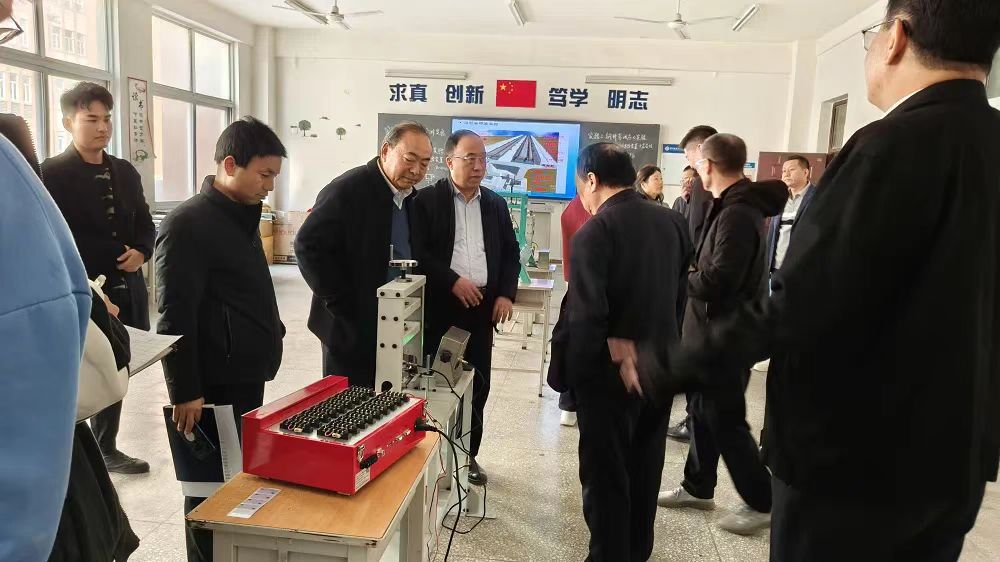轨道工程学院院长闫富有、党总支书记刘开洋分别就实验中心的建设思路和现状、学生实训情况及建设规划等进行了汇报。中心下辖各实验室主任邸小龙、晋学超、王献雨、张震、任博鑫、于永齐、姜世田及部分教师对各个实训室的实训项目进行了详细讲解。从轨道测试基础实验室、工程测量实训室、铁路桥隧检测实验室,到工程力学性能测试实训室、钢筋混凝土无损检测实训室、桩基检测试验室和轨道检测实训室,每到一处,领导们风采熠熠,洞察细微,在听取汇报后,关切询问讲解教师对实验室建设还有什么要求和建议,就建设现状给予了充分肯定,对下一步的工作提出了进一步的建议。纪多辙就当前人才培养方案与实训中心建设条件之关系提出了明确要求,刘艳萍对实训中心的建设规划进行了展望。