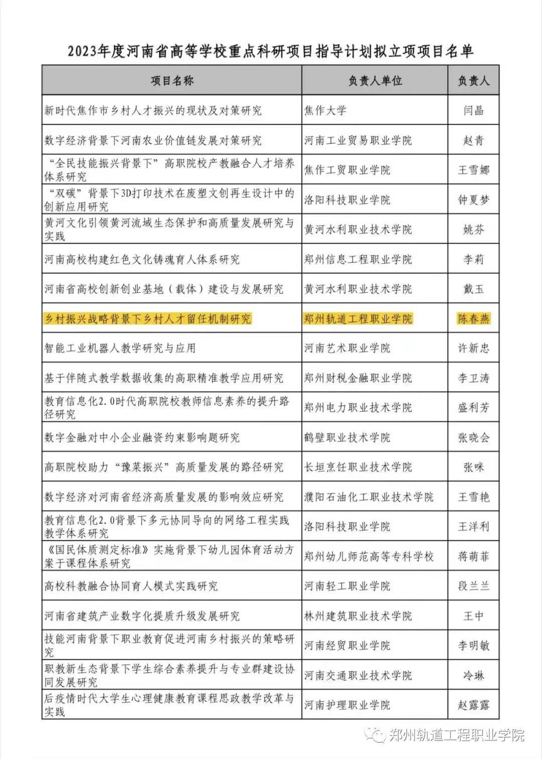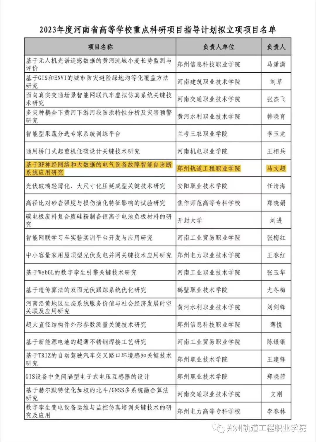 根据《河南省高等学校重点科研项目管理办法(修订)》(教科技〔2019〕234号)精神,按照河南省教育厅《关于申报2023年度河南省高等学校重点科研项目的通知》(教科技〔2022〕150号)要求,经申请、省教育厅审核并组织专家评审,2023年度河南省高等学校重点科研项目计划立项项目日前公布,我校共获立项6项。具体如下: