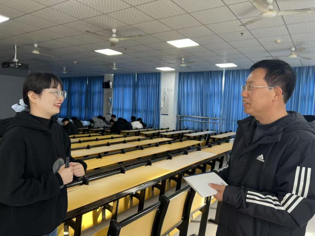 调研组采取随机抽取、推门听课的方式,听取马克思主义学院六位老师的课程内容。听取王俊华老师及尹贻旭老师讲授的《习近平新时代中国特色社会主义思想概论》课程,杨萌老师和杨莎莎老师讲授的《思想道德与法治》课程以及杜慧敏老师和邵尉老师讲授的《形势与政策》专题。六位老师均围绕教学专题要求,结合党的二十届四中全会精神,以饱满的精神状态、深入浅出的讲解方式,为学生带来一节生动的思政课。