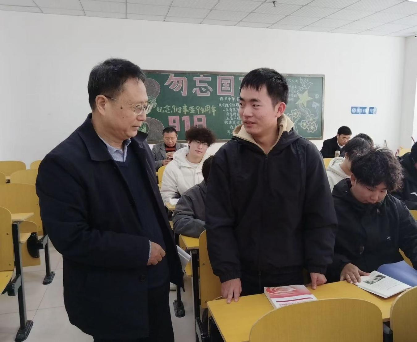 为深入贯彻习近平总书记关于学校思政课建设的重要指示批示精神,按照《教育部办公厅关于开展2025-2026学年高校思政课课堂教学提升行动的通知》(教社科厅函〔2025〕10号)要求,强化高校思政课建设常态化监测,11月24日上午,全省高校秋季学期思政课“大听课 大调研”第十五专家组信阳师范大学马克思主义学院院长唐国战、南阳师范学院马克思主义学院院长靳安广、黄河科技学院马克思主义学院院长王振国、新乡职业技术学院马克思主义学院院长崔立锋、信阳师范大学马克思主义学院副院长常文涛、郑州航空工业管理学院马克思主义学院副教授王武一行6人莅临我校开展听课调研活动,我校党委书记张旭虹、副校长王跃生、理事长助理李文渊、马克思主义学院院长韩超、党总书记姚静华陪同调研。