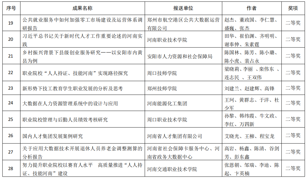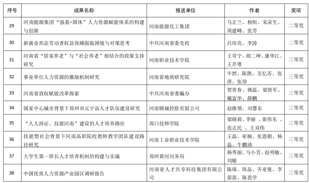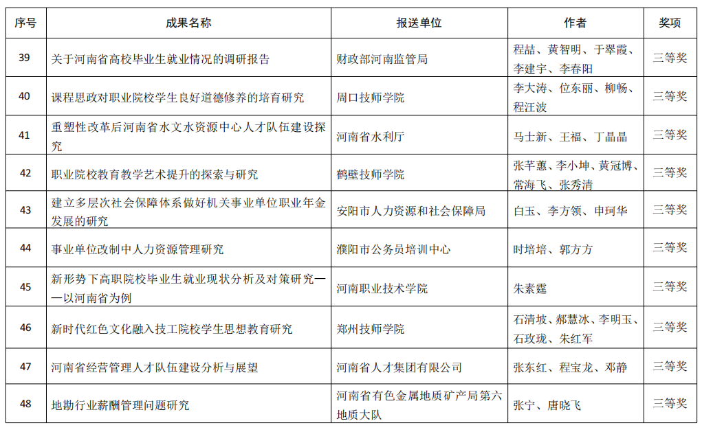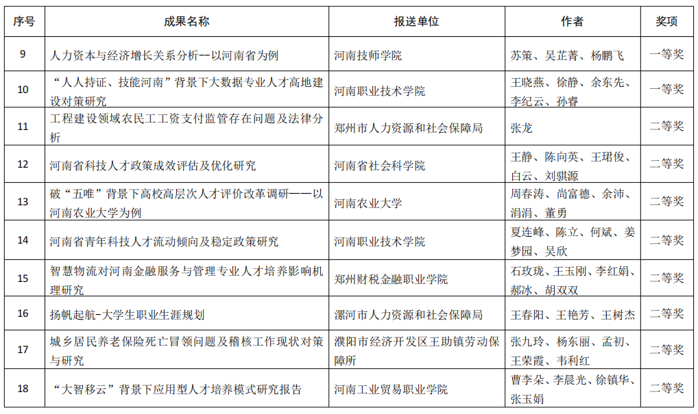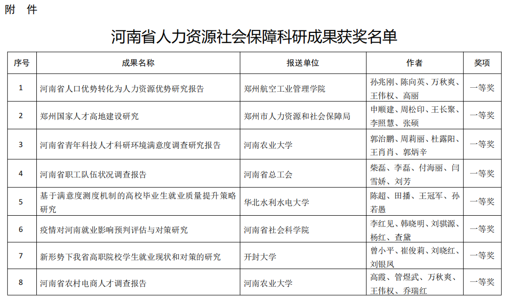 附件:河南省人力资源社会保障科研成果获奖名单