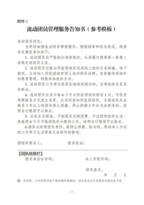 注意:原就读学校团组织不得将已升学的毕业学生团员组织关系转至团员居住地或户籍所在地团组织。