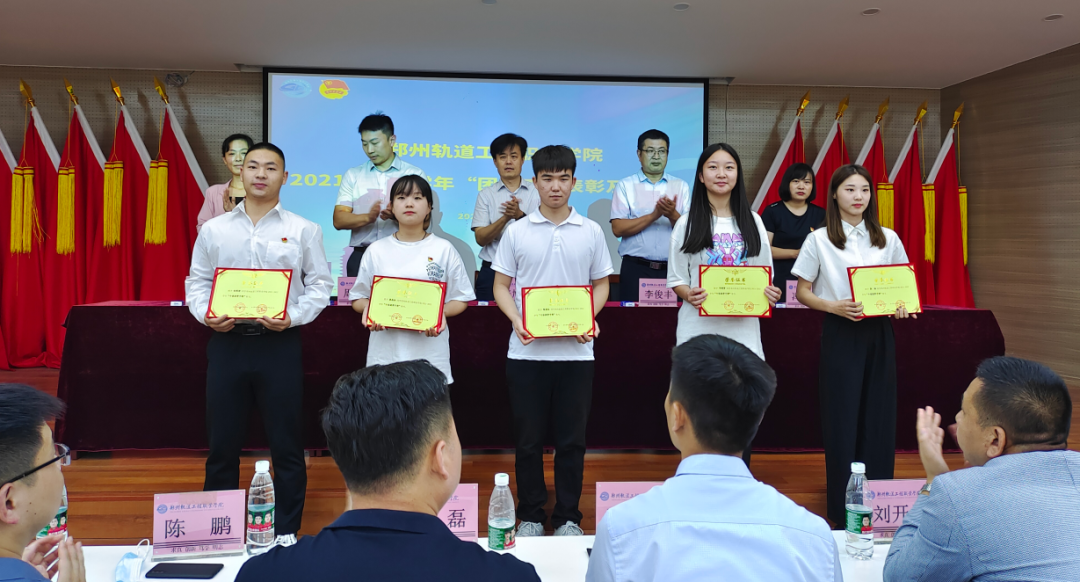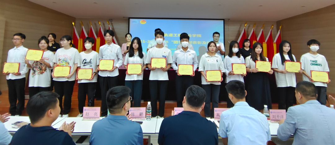 学院副院长周珂宣读《2021-2022学年关于表彰五四红旗团支部、优秀共青团干部、五四青年奖章等先进集体和个人的决定》并鼓励干部们牢记使命,不断前进,为郑轨院共青团贡献力量。