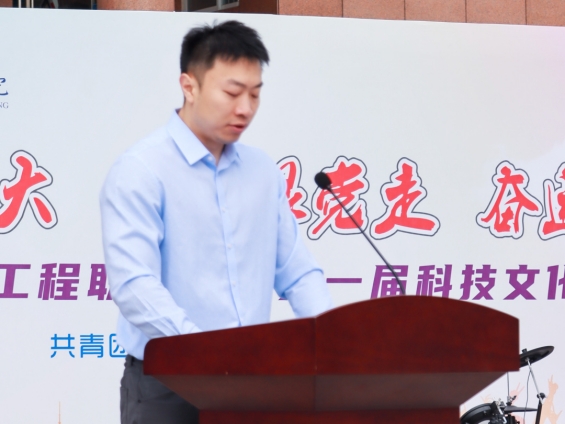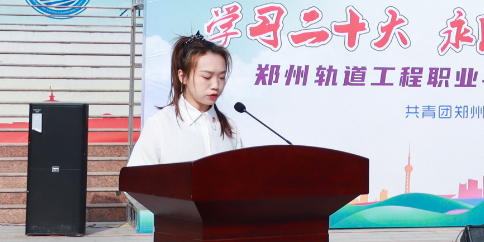 获奖代表电气工程系21级供电一班团支部书记王茜上台发言。她号召郑州轨道工程职业学院所有学生在以后的学习与生活要处处以雷锋同志为榜样,严格要求自己,让人人争作雷锋的思想深入每一个郑轨学子的心灵。
