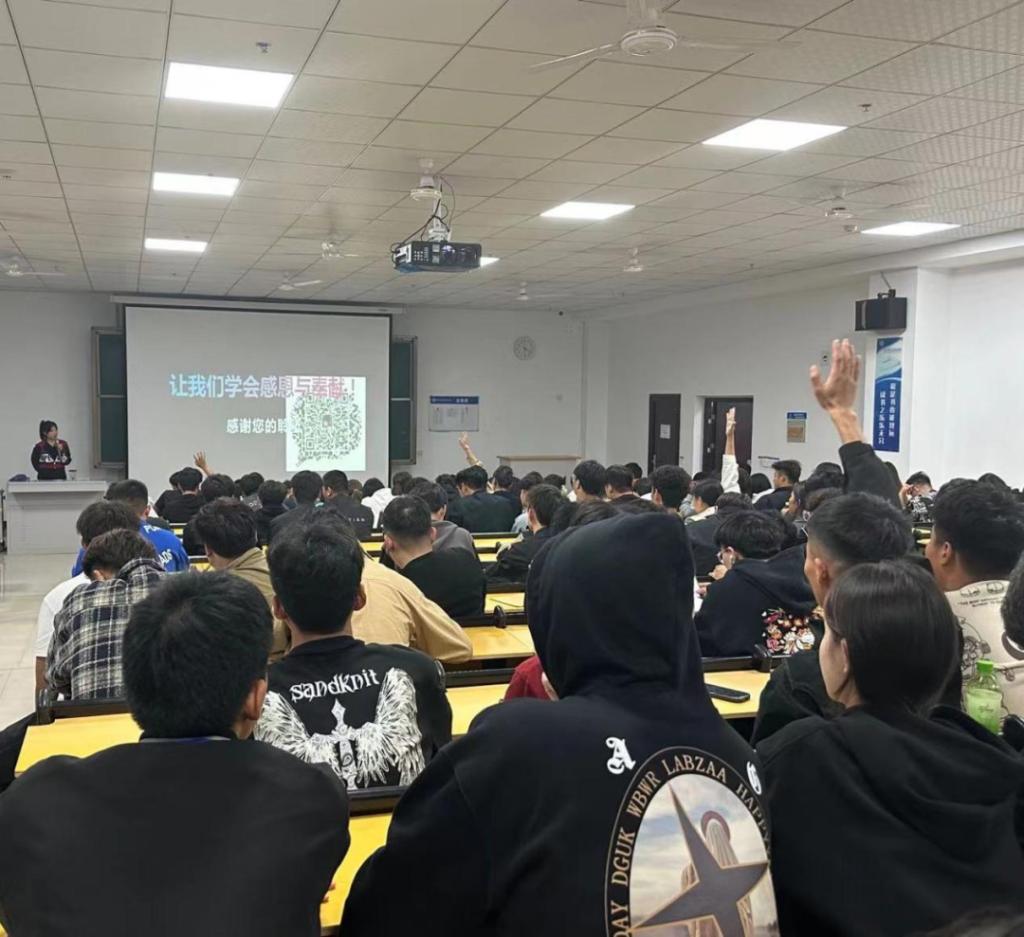 李晨同志从血液科普知识、献血历史、参与无偿献血的意义、献血前后注意事项以及献血反应处理等方面,为师生进行了详细讲解,并与大家现场互动,师生们全程仔细聆听完李晨同志热情洋溢的讲解,现场不时响起热烈的掌声。