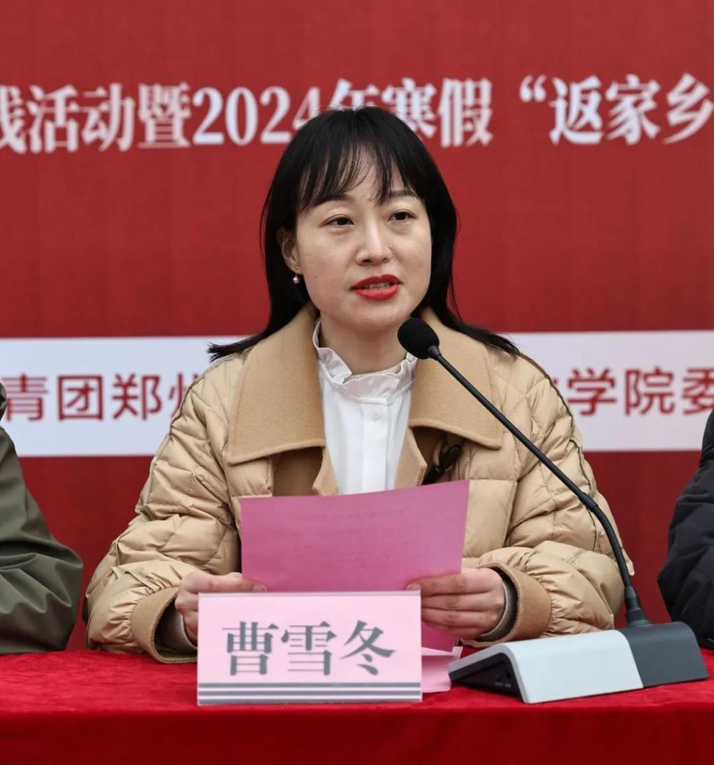 党委宣传部部长曹雪冬宣读2024年寒假“返家乡”社会实践活动表彰人员名单。