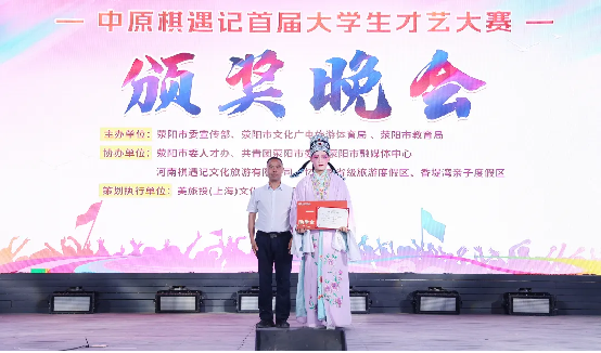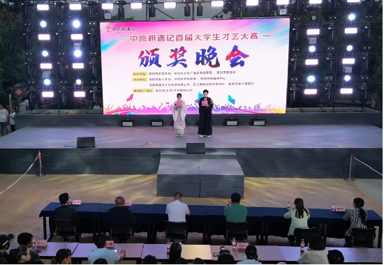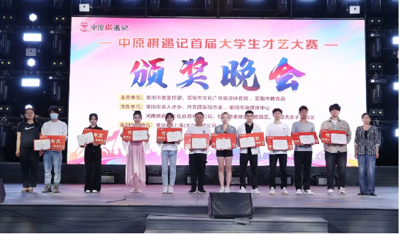 5月12日晚19:00,中原棋遇记首届大学生才艺大赛颁奖晚会在沙滩舞台成功举行,我校领导校长助理、党委学工部部长、人武部部长冯巧慧受邀出席颁奖晚会。
