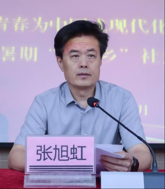 张旭虹作动员讲话,他向同学们提出四点希望:一、希望同学们牢记使命,履职尽责。深入地学习习近平新时代中国特色社会主义思想,了解国家飞速发展取得的辉煌成就,讲好中国故事,牢固树立跟党走中国特色社会主义道路的坚定信念。二、希望同学们在实践中受教育、长才干、做贡献。将书本知识与基层的丰富实践结合起来,走近基层,尊重群众,虚心向群众请教,增强服务群众的能力。认识自身与社会需要之间的差距,增强应对复杂局面和解决现实问题的能力。三、希望大家重视宣传与总结工作,提升社会实践活动社会影响力。组织专门力量做好活动的宣传报道工作,创新形式和载体,发挥新媒体优势,努力增强宣传的吸引力和感染力,不断扩大我校暑期实践活动的社会影响力。四、希望同学们筑牢安全意识,确保活动顺利进行。完善制度规范、严格组织纪律,加强安全教育和保障,做好前期调研和出发准备,保障学生人身和财产安全,特别要高度关注极端气候变化和服务地区的自然条件,风俗民情,做好自然灾害和突发事件应对预案,为本次“三下乡”实践活动保驾护航。