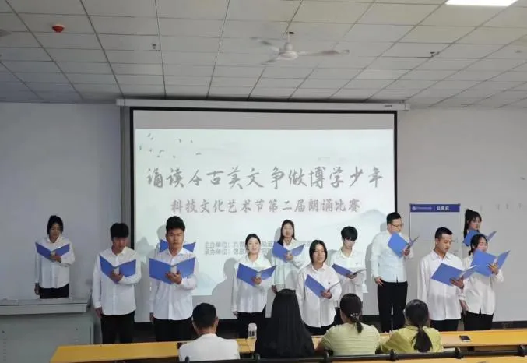 随着主持人宣布比赛开始,参赛队伍依次上台,展现出了朝气蓬勃的精神面貌及斗志昂扬的竞赛态度,他们用振奋人心的声音诵读着一篇篇精彩的文学作品。