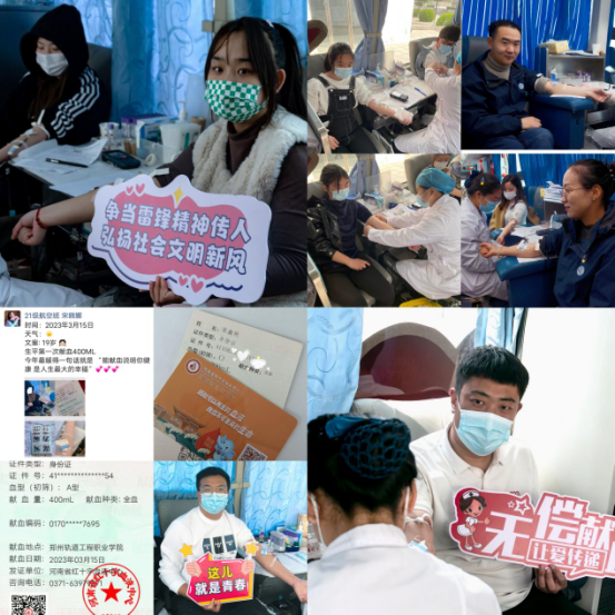 奉献滴滴热血,播洒片片挚爱。为响应国家深入开展学习雷锋精神活动的号召,用实际行动大力弘扬“奉献、友爱、互助、进步”的雷锋精神和新时代志愿服务精神。3月15日至16日,郑州轨道工程职业学院学工部联合河南省红十字血液中心举办的“青春热血,奉献有我”无偿献血活动在我校顺利开展。活动为期两天,505名师生踊跃献血,献血量共计168500毫升。