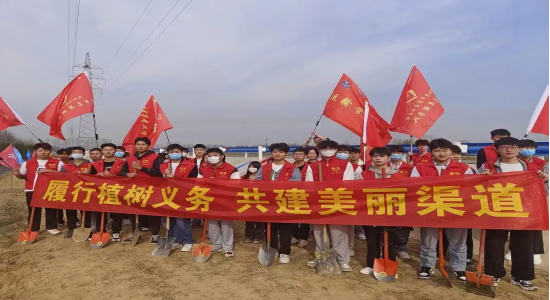 3月10日上午八点三十分,郑州轨道工程职业学院组织40余名团学干部参观了我国重要的水利工程“南水北调”水渠豫龙段,并走进水渠两岸开展植树活动。