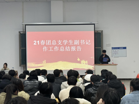 2021级春季团总支书记叶小辉围绕团员思想政治引领、团支部组织建设、围绕全校工作中心、服务全校高质量发展等方面作了2022年的述职报告,总结了2022年度团总支工作开展情况和特色亮点,分析存在问题并认真谋划2023年团总支工作计划。