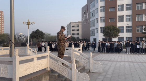 2022级春季年级长张鹏带领2022级春季全体师生宣誓并作总结讲话,学生安全是首要,和谐稳定靠大家维护。