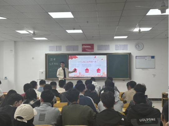 王老师将团史、三会两制一课与学生的日常生活相结合,循序渐进的讲解,真诚朴实的语言打动了学子们的心,他们纷纷拿起纸笔做记录,写下自己的心灵感悟。