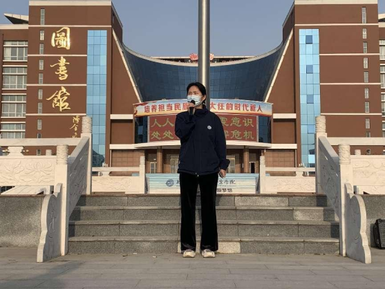 最后运输管理系团总支书记冯玉娇对本次升旗仪式进行总结发言:“各位同学要充分认识自然灾害风险防范化解工作的重大意义。加大宣传解读思想、加强灾害防治能力和灾害风险隐患发现意识,从源头上防范化解安全风险,真正把问题解决在萌芽之时、成灾之前、持续筑牢安全基础,成就美好安定的社会和幸福美满的人生。”