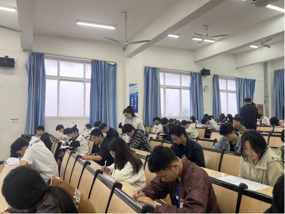 考试过程中,团委李鹏涛、梁盼老师巡视监考,维持考场纪律,确保整场考试顺利进行。考场纪律优,同学们认真作答,无不良现象发生。