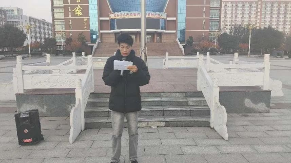 学生代表李一飞发表演讲:当别有用心的人攻击我们的政党、抹黑我们的英雄、扭曲我们的价值理念、撕裂我们的社会认同时,我们应保持清醒的头脑,捍卫宪法的权威,坚定信仰的决心,用理性智慧给予敌人猛烈的回击!