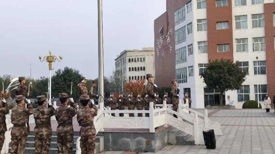参与人员准备就位,七点升旗仪式正式开始。国旗仪仗队的教官们迈着整齐划一、铿锵有力的步伐,从国旗广场入口开始正步走向旗杆。全体师生面向国旗肃立敬礼。随着《义勇军进行曲》的奏响,五星红旗在国旗广场冉冉升起,在熠熠晨光中迎风飘扬。
