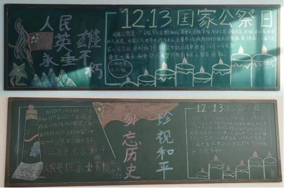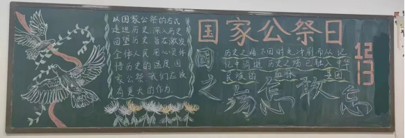 为了对南京大屠杀的受难者表示深深的哀悼和敬意,铭记历史,弘扬和平,警示世人珍惜和平稳定的来之不易,2023年12月13日,校学生会组织开展了一系列纪念活动,号召大家以史为鉴、开创未来,一起维护世界和平及正义良知,促进共同发展和时代进步。
